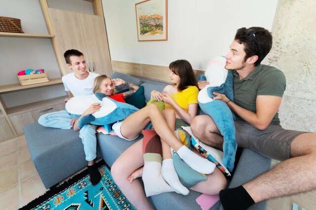 Во всех номерах хостела обустроена гостиная зона. Из некоторых номеров хостела «Friends» открывается вид на сад. Кроме того, в каждом номере есть патио. Гости всех номеров пользуются общей ванной комнатой. Предоставляются тапочки и постельное белье.
